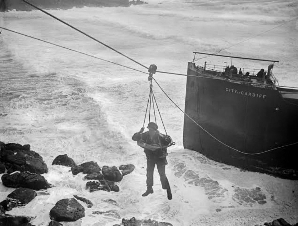 Can you imagine getting 1400 (drunken) servicemen off a sinking ship -- 600 to land and 800 via rescue boats -- at 5am, across waves and trecherous rocks on a foggy morning. Pretty amazing that not one life was lost.